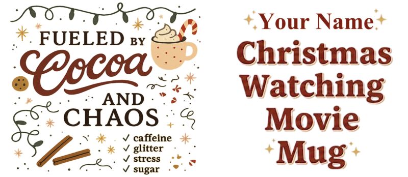 FUELED by COCOA and CHAOS, Christmas Mug Wrap Design with Personalized Name - CTM-01