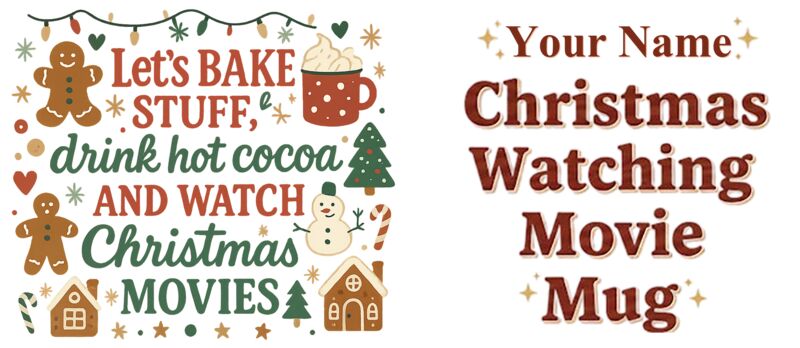 Let's BAKE STUFF, drink hot coca AND WATCH Christmas MOVIES, Christmas Mug Wrap Design with Personalized Name - CTM-06